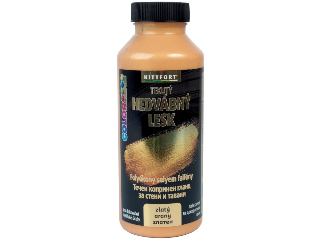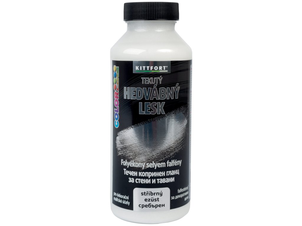 TEKUTÝ HEDVÁBNÝ LESK pro malířské účely se používá především k vytváření reflexních efektů na stěnách v interiérech. Lesk se nanáší pomocí dekoračních válečků, kterými na stěnách vytváříme různé ornamenty. Lesk je možné z původního odstínu, měnit pomocí malířských a tónovacích barev COLORLINE 2v1 do různých odstínů.